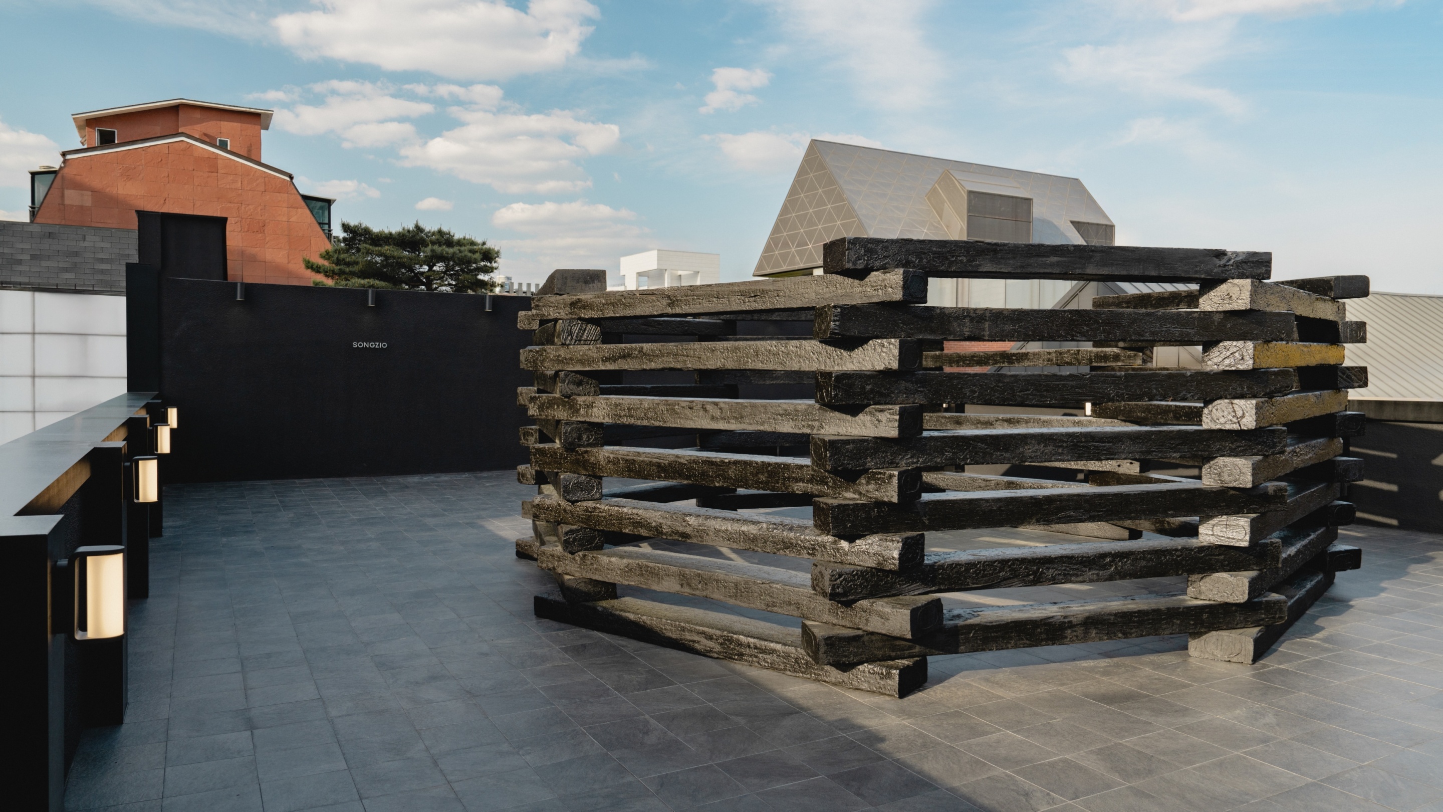 30여 년 역사를 지닌 패션 브랜드 송지오의 플래그십 스토어 겸 현대미술 갤러리. 도산공원 부지는 1993년 송지오가 첫 매장을 연 지역이기도 해 인연이 깊다. 참고로 1990년대에 송지오 매장은 국내 예술가와 디자이너들의 교류의 장으로 기능하기도 했다. 공간의 메인 컬러는 블랙으로, 고요하면서도 뚜렷한 개성을 드러내는 송지오의 창작관과 닮았다. 송지오 인터내셔널이 공간 기획과 디자인을 총괄했는데, 기존 건물을 리모델링하는 과정에서 자연 소재인 목재와 인공 소재인 콘크리트를 함께 사용하며 ‘질서와 무질서’를 콘셉트로 상반되는 요소들의 충돌을 공간에 구현했다.