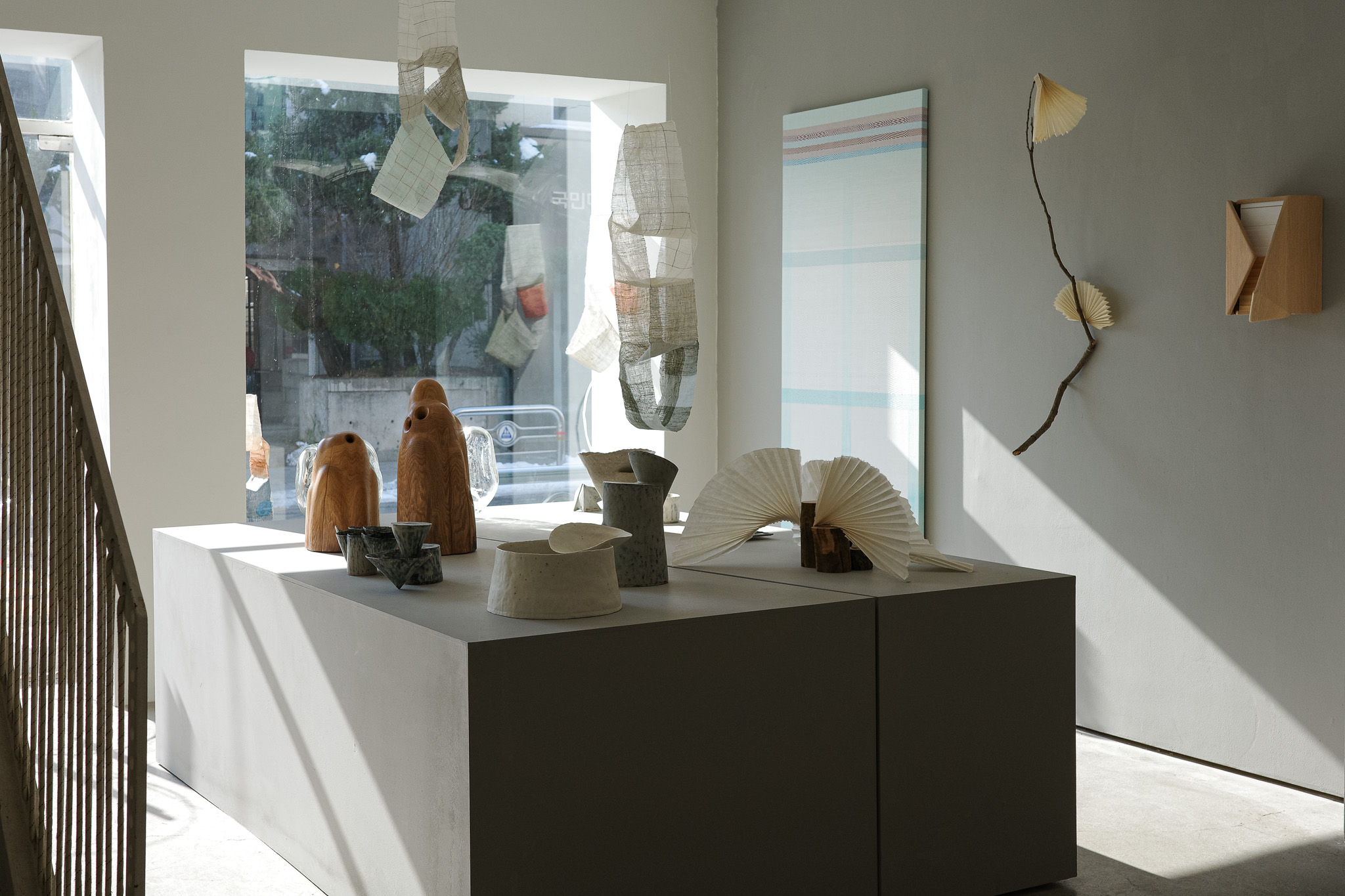 한 공간에서 한국의 공예 작가들의 작품과 조용하게 조응하는 핀란드 작가들의 작품도 놓칠 수 없다. 핀란드 가구 브랜드 피스카스(Fiskars)에서 목재 가구 작업을 선보이는 장인이자 디자이너 안트레이 하르티카이넨(Antrei Hartikainen)은 나무라는 재료에서 얻은 영감을 유기적 형태의 작품으로 선보인다. 이번 전시의 공간을 연출한 한니 코로마(Hanni Koroma)는 지속 가능하고 유쾌한 디자인 철학을 바탕으로 한 가구 디자인을 소개하며, 건축적 특성을 미니멀한 방식으로 표현한 섬유 예술가 헬리 투오리-루토넨(Heli Tuori-Luutonen)의 작품도 만날 수 있다.