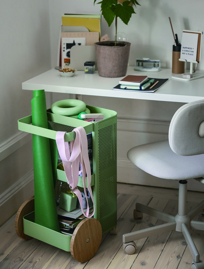 여기에 운동 후 쿨다운에 필요한 쿠션, 후드 판초 목욕 가운과 욕실용 슬리퍼, 스탠드 옷걸이, 그리고 이 모든 아이템을 효과적으로 수납할 수 있는 카트와 수납 벤치도 추가했다. 이 중 레트로 트레이닝용품에서 영감을 받은 수납 벤치는 평소 커피 테이블로도 사용할 수 있는 다기능 제품이다. 컬렉션의 키 컬러인 은은한 파스텔 그린은 자연스럽게 집 안 인테리어와 어우러지며 스타일을 업그레이드시킨다. 컬렉션을 전담한 이케아의 인하우스 디자이너들은 운동이라는 주제를 저마다의 관점으로 달리 해석하되 사용자가 원하는 방식으로 실내 어디서든 유연하게 사용할 수 있는 합리적인 금액대의 컬렉션을 만들자는 공동의 목표 아래 프로젝트를 진행했다. 운동이 장보기나 강아지 산책만큼 간단하다고 이야기하는 이케아의 다일리엔 컬렉션은 면밀한 사용자 경험 분석과 디자이너의 감각이 더해졌을 때 어떤 시너지를 발할 수 있는지 보여준다.