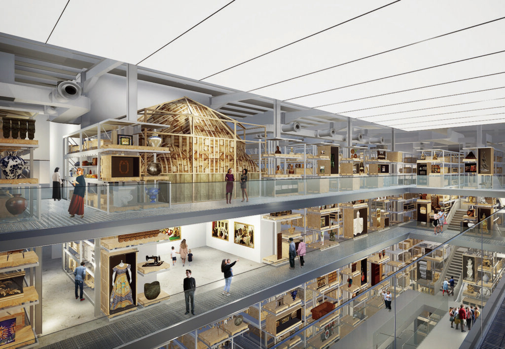 런던 동부는 부촌이 밀집한 서부에 비해 상대적으로 낙후되어 있어 그 격차를 해소하기 위한 부동산 개발과 투자가 활발하게 이루어지는 중이다. 2012년 런던 올림픽 스타디움이 동부에 둥지를 튼 것도 같은 이유다. 그런데 그곳에 V&A 이스트가 개관한다는 소식이다. 개방형 수장고 콘셉트의 V&A 이스트 스토어하우스는 2024년, V&A 이스트 뮤지엄은 2025년 각각 완공을 앞두고 있다. V&A 이스트 스토어하우스는 2018년 공모에서 당선된 딜러 스코피디오+렌프로Diller Scofidio+Renfro가 설계를 맡았다. 이들은 관람객이 V&A 컬렉션의 심장부에 도달한 듯한 느낌을 전달하고자 했다. 건물 중정을 비워 개방감을 확보한 덕분에 이곳에 소장하는 오브제 25만여 점과 아카이브 917점을 어디론가 대여하거나 보존 처리, 촬영하는 모습을 실시간으로 관찰할 수 있게 된다. 한편에는 프랭크 로이드 라이트가 설계한 카우프만 오피스를 실제 사이즈로 재현하는 등 디자인사에서 의미 있는 공간도 옮겨놓을 예정이다. vam.ac.uk