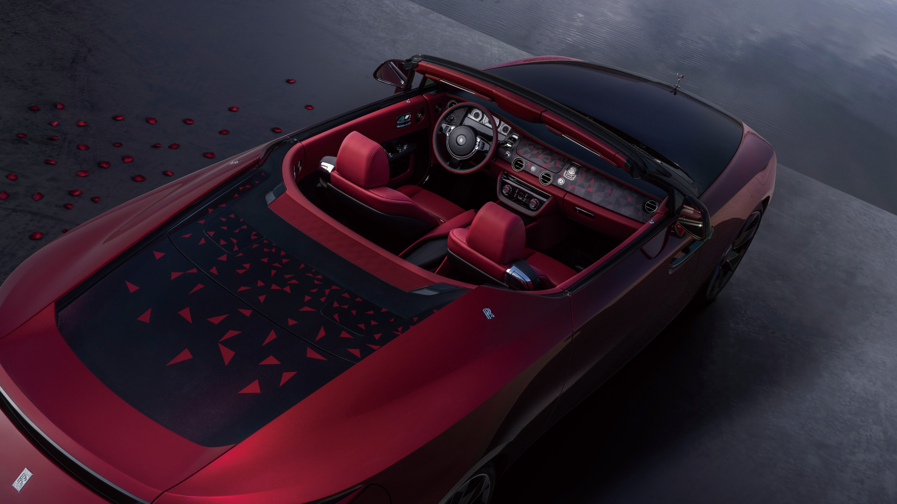 차량 내부에 적용한 목재에서도 동일한 특징이 확인된다. 흩날리는 장미 꽃잎을 표현하기 위해 롤스로이스의 디자이너와 장인들은 쪽모이 세공(parquetry)으로 차량에 1600여 개의 블랙 시커모어 나무 비니어 조각을 정교하게 세팅했다. 각기 다른 1070개의 대칭적 조각 패턴으로 배경을 이루고, 비대칭으로 배치한 533개의 붉은 조각으로 꽃잎을 형상화했다. 또한 목재의 색이 바래는 것을 방지하기 위한 래커 처리 방식 개발에만 1년 이상을 소요했다고. 이 패턴은 리어 데크와 맞춤형 샴페인 체스트 측면까지 이어진다.