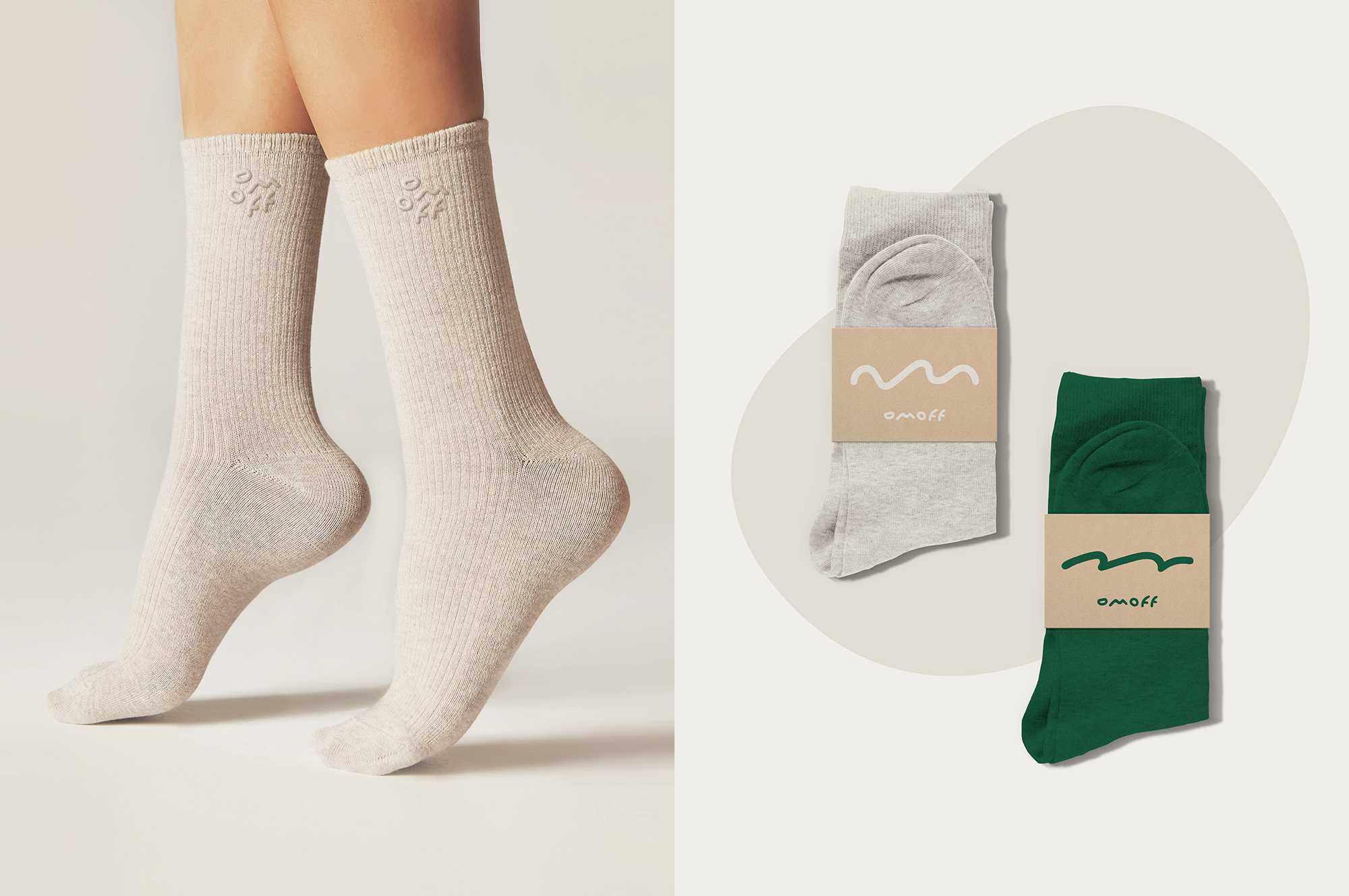 자유롭게 드로잉한 서체로 디자인한 옴오프의 로고타입은 부드럽고 유기적인 형태를 통해 지속 가능한 행복을 추구하는 브랜드의 가치를 담고 있다. 옴오프 그린과 옴오프 베이지를 메인 컬러로 선정해 자연 친화적이고 건강한 삶의 가치를 전달하는 브랜드 이미지를 강화했다.