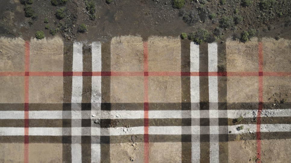 남아공 자연 위에 그린 버버리 체크 패턴