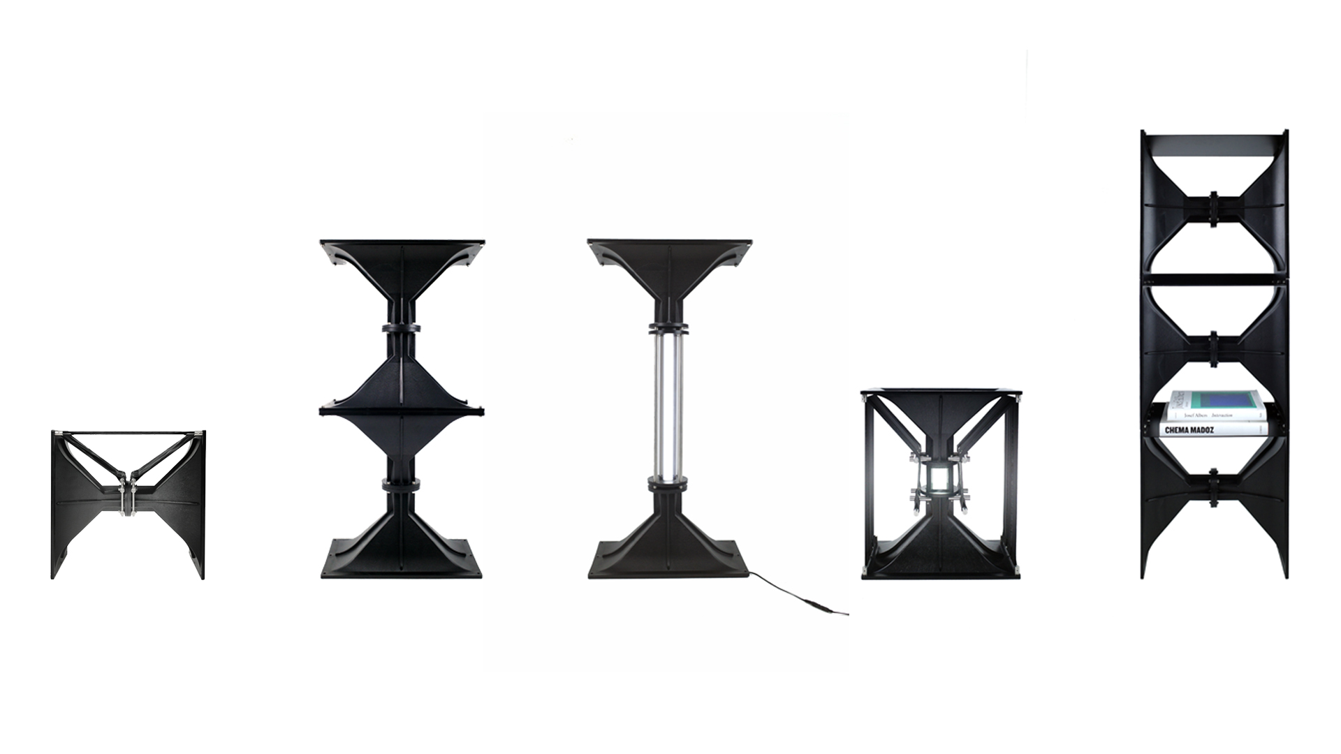 심주용(이하 심): 제 작업은 ‘형태는 기능을 따른다’라는 오랜 명제에 대한 의문으로 출발합니다. 기능 우선주의가 만들어낸 형태와 기능의 일대일 대응에 대한 강박이 사물의 잠재된 쓸모를 알아차리지 못한다고 생각한 것이죠. 이 가설을 증명하기 위해선 사물에 두 가지 조건을 충족해야 했습니다. 첫째는 기술이 발전하면서 기능성을 상실했다고 여겨지는 공업 문명의 산물이어야 했고, 둘째는 사람들에게 미시감을 일으킬 수 있는 이면의 모습이 존재해야 했죠. 이 둘을 충족시키는 사물 중 하나가 스피커 부품이었습니다. 작품의 주재료인 ‘Speaker Horn’은 본래 소리를 확장하는 목적으로 제조되었습니다. 하지만 입체적 소리 구현의 어려움, 복잡한 설계 등의 이유로 현대 음향 시스템에서 잘 쓰이지 않는 추세이죠. 저는 이 부품의 조형과 구조를 재해석해 새로운 기능의 가능성을 발견하고 이를 가구에 대입하는 것을 목표로 삼았습니다. 기능 우선주의에서 벗어난 사고가 형태 안에서 열린 행위와 창의적 행위를 유발할 수 있다는 것을 증명하고 싶었죠.