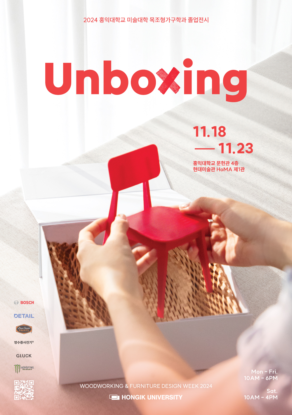 물건이 사용자와 만나는 첫 순간처럼 〈Unboxing〉은 우리의 이야기가 가득한 상자를 여는 첫 순간의 설렘을 담고 있다. 36명의 작품은 새로운 경험과 시각을 열어주는 열쇠가 되어 관람객의 호기심과 기대를 자극한다. 상자를 열며 펼쳐지는 다양한 이야기들, 이제 두근거림을 안고 우리의 가능성을 언박싱한다.