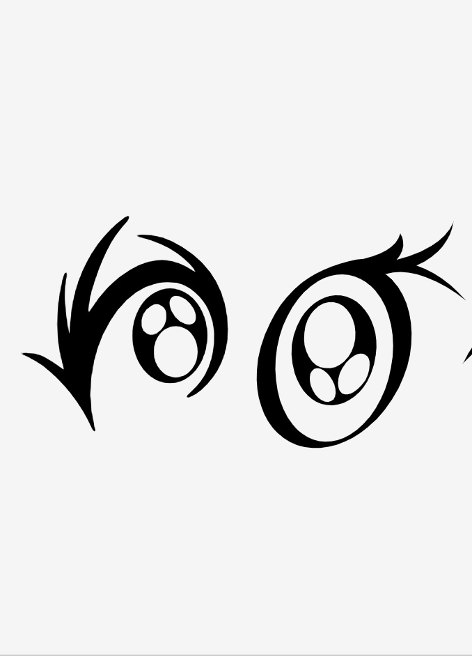 눈의 요소들을 분할해서 표현한 글자들. '눈'의 각 특징들이 같은 것에서 비롯되었지만 서로 매우 다른 것처럼 폰트'가 가진 서로 다르지만 같은 특징을 강조하고자 의도했다.