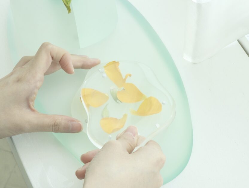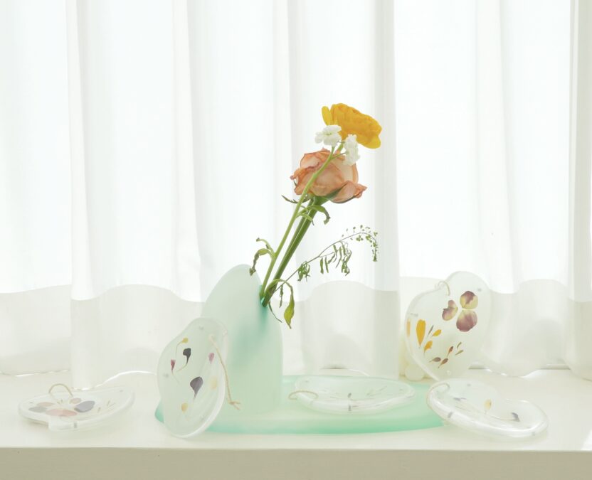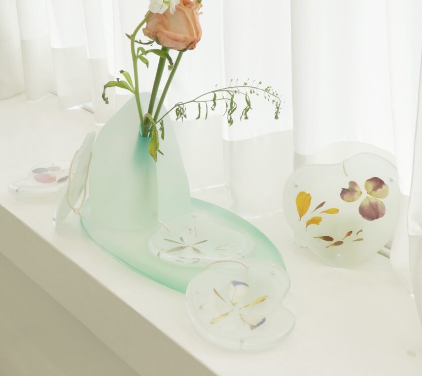 꽃선물이 시들고 사라지면 꽃의 생김새, 색과 향기, 그리고 그 속에 담긴 의미까지 차츰 기억에서 사라져버리곤 합니다. 화병과 함께 놓이는 꽃잎 플레이트를 통해 꽃이 시들어 남겨진 빈자리의 허전함을 메워주고, 꽃선물에 담긴 의미와 기억을 보존할 수 있도록 도와주는 오브제 화병입니다.