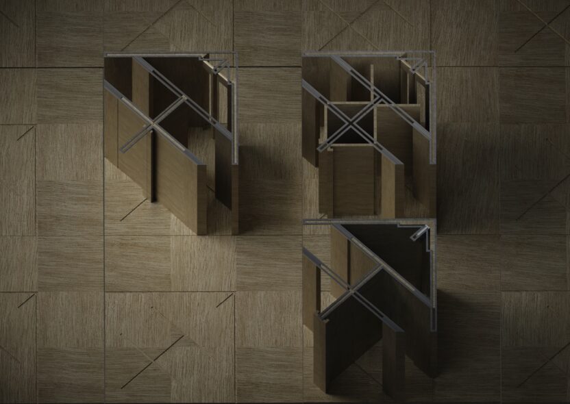 아홉 칸으로 나뉜 공간의 마주보는 축에서 게스트가 문을 밖으로 잡아당기며 시작한다. 단번에 안으로 밀고 들어가는 것이 아닌 들어가기 위해 밖으로 물러서면 양쪽에 두개의 통로가 열린다. 동시에 연결된 반대쪽 문은 호스트의 공간을 축소시킴과 동시에 쉽게 침범할 수 있는 타의적 독단의 공간이 되며 게스트의 동작으로 공간의 경계가 바뀐다. 그러나 게스트에게만 경계를 바꿀 수 있는 주도권을 주는 것이 아닌 게스트의 동작으로 출입할 수 있는 공간은 한정적이며 이후에는 내부의 호스트가 자신의 공간 안쪽으로 문을 당겨야 온전하게 통로가 열린다. 서로 동작을 주고 받으며 호스트는 자신만의 공간을 온전히 점유할 수 있는 자유와 게스트에게는 공간을 모두 지날 수 있는 각자의 자유가 주어진다.