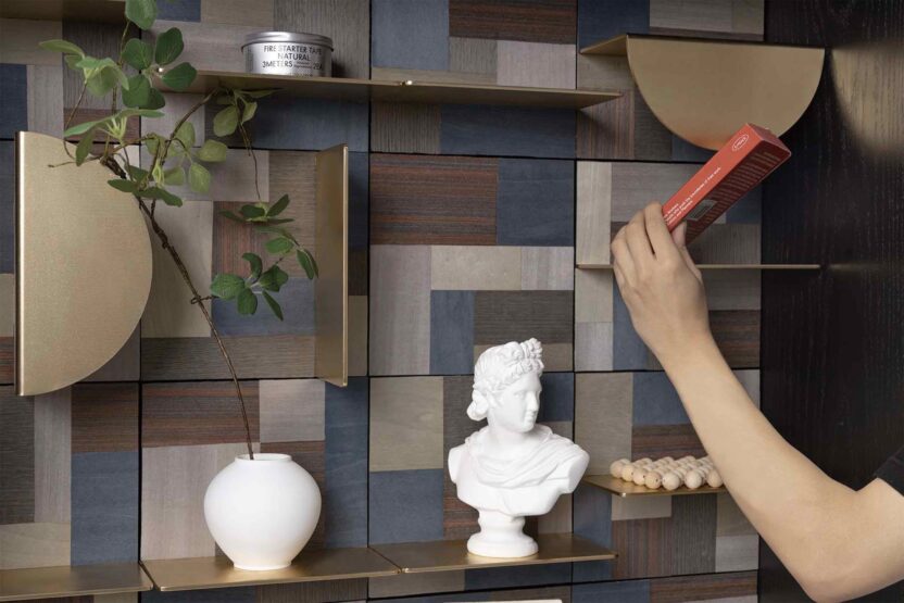 일상 속 마주하는 사물들을 통해 사소한 것들의 아름다움과 영감을 발견하기 위해서 그것들을 내 시선대로 재구성하는 행위가 필요하다. <Ordinary Curation> 사용자가 무늬목 조각보 패턴이 입혀진 모듈형 유닛 선반을 자신의 의도대로 편집하여 유닛들이 만들어내는 조합 속 빈 공간에 자신의 사물들을 재구성한다. 레이아웃을 편집하며 하나의 씬을 구성하고, 평상시에 보는 사물들을 새로운 관점으로 볼 수 있다.