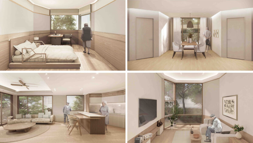 노인 단독가구 수의 증가와 실버타운의 수요는 날이 갈수록 증가하지만 수요에 비해 턱없이 부족한 공급으로 인해 건강한 노후 생활의 꿈은 저물어가고 있다. AGING IN PLACE 가치에 기반해 거주 공간과 의료, 오락, 체력 단련 공간을 결합하여 익숙한 공간에서 정신적 안정과 심리적인 편안함을 느끼며 노인 스스로가 자립하고 건강하게 늙을 수 있도록 따뜻하게 감싸는 주거공간의 필요성이 대두되고 있다. 노인들은 살고있던 기존의 독립된 주거에서 나와 건강한 노후 생활을 꿈꾸며 함께 살아가기 위해 실버타운을 찾는다. 다양한 개인이 모인 이 공간에서 노인 스스로가 자립하여 살아갈 수 있록 남은 여생의 마지막 보금자리가 될 ‘집’을 만들어보고자 한다.