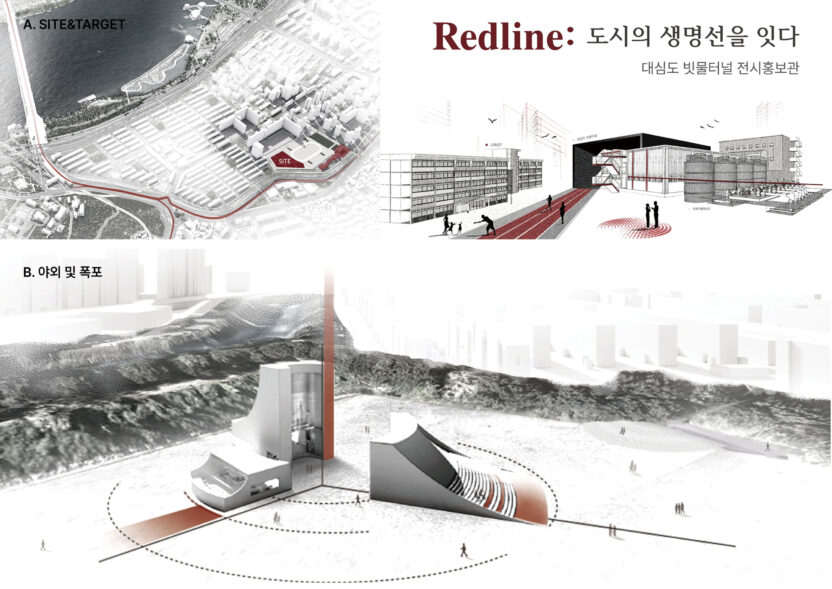 A-Site&Target: 반포종합운동장에 위치해 있으며 인근에는 반포천이 흐르고 운동장내에 반포빗물펌프장이 위치해있다. 강남의 항아리 지형과 유사한 운동장 지형을 활용해 도시 물 순환 시스템을 이해하는 공간을 만들고 주변 지형을 활용한 휴식공간을 제공하고 다목적 공간을 만들어 다양한 관람객을 유도한다.