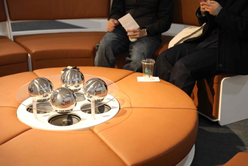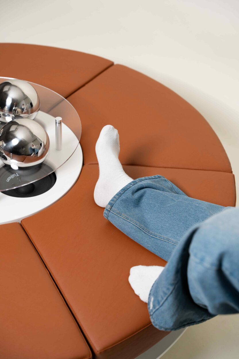 음악과 함께하는 소파와 오토만 세트. 사용자들이 따로 혹은 같이 둘러 앉아 음악을 감상하며 자유롭게 휴식을 취하는 장면을 떠올리며 디자인했다.