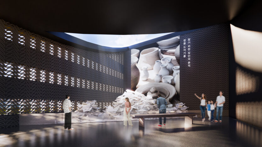 5. 人의 공간_신도예작가 전시공간: 신도예 작가들의 작품을 전시하며, 자연과 인간의 혼이 결합된 예술이 과거부터 현재, 미래까지 이어질 것임을 알려주는 공간이다.