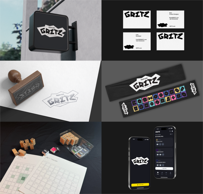 유연하게 변화하는 도전과 성장의 과정을 상징하는 심볼을 적극적으로 활용해 brand value를 나타냅니다. 목표까지 함께한다는 동반자이자 응원을 불어넣어주는 GRITZ를 시각화해서 보여줄 수 있는 스탬프와 응원타올을 굿즈로 제작했습니다.