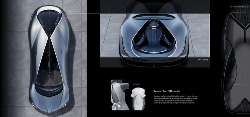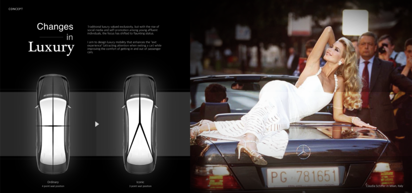 기존의 럭셔리 시장은 폐쇄적이고 감추는 것을 미덕으로 여겼다. 하지만 최근에는 자기 PR을 중요시하는 젊은 부자들이 많아지고 SNS의 빠른 발전으로 인해 자신의 지위를 뽐내는 것으로 럭셔리 시장의 방향이 많이 변하였다. 이러한 흐름에 맞추어 Mercedes-Benz Project Zenith는 소위 하차감(차에서 내릴 때 집중되는 주변 사람들의 시선)이라 불리는 경험을 극대화하여 영광의 순간을 더욱 빛나게 한다. 여성의 드레스 라인에서 영감을 얻은 탑 뷰 실루엣은 차량의 캐빈을 감싸는 듯한 그래픽을 가짐과 동시에 3포인트 시트포지션을 구성하여 기존의 럭셔리 자동차와는 차별화된 독특한 익스테리어와 인테리어 레이아웃을 가진다.