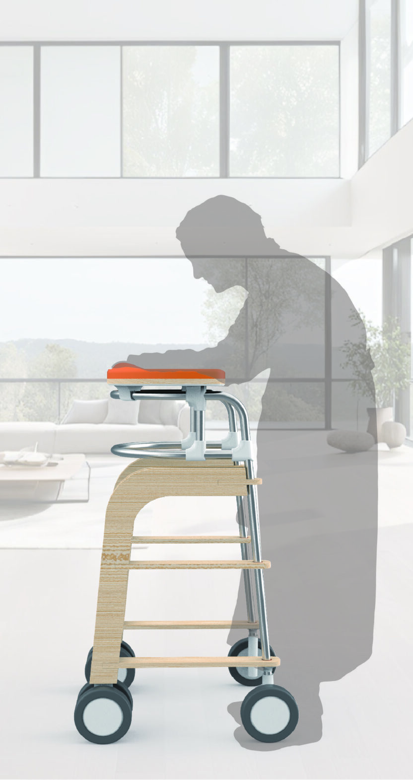 고령자는 나이가 들수록 신체적 노화로 인한 낙상사고 발생 위험이 높다. 고령자의 낙상사고 중 약 60%는 주거지에서 발생한다. 낙상사고를 예방하는 기존의 실내 보조보행기는 환자들을 위한 제품으로 최소한의 디자인과 고령자에게는 불필요한 기능, 환자 같은 보행 경험을 준다. 따라서 불필요한 기능은 없애고, 고령자에게 집안에서 안전하고 편안한 보행 경험을 주는 실내 보조보행기를 제안하고자 한다.