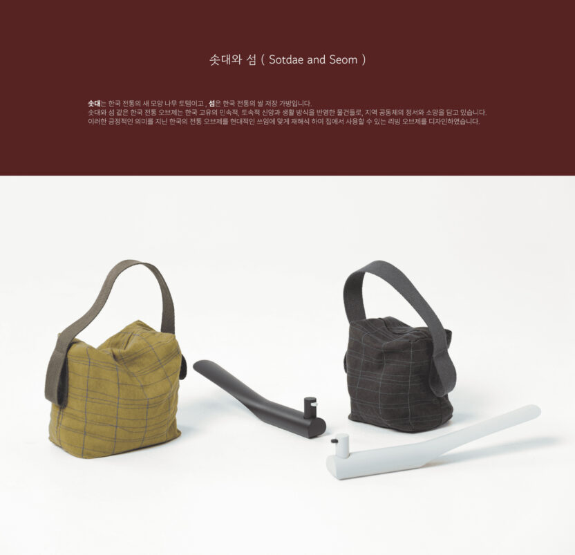 "솟대와 섬 같은 한국 전통 오브제는 한국 고유의 민속적, 토속적 신앙과 생활 방식을 반영한 물건들로, 지역 공동체의 정서와 소망을 담고 있습니다. 이러한 긍정적인 의미를 지닌 한국의 전통 오브제를 현대적인 쓰임에 맞게 재해석 하여 집에서 사용할 수 있는 구두주걱 , 도어스탑 등의 리빙 오브제를 디자인하였습니다."