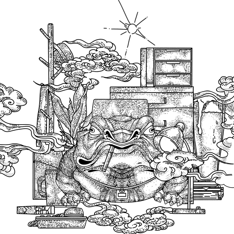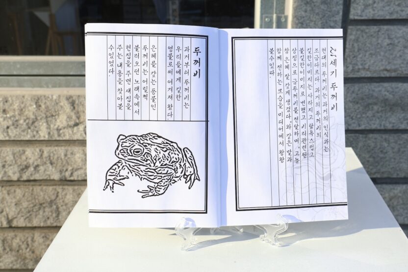 이레즈미에 표현 기법과 비슷한 방향성과 고전적인 무드를 가지고 있는 소재를 선정하는 과정에서 옛날 상소를 올리는 것을 연출할 수 있는 족자를 선택하였다. 재개발의 진행 과정과 이 과정 속 발생하는 갈등과 문제들을 서술한다. 풍자된 두꺼비와 등장인물을 설명해 주는 사물들에 대한 정보를 작성한다. 이레즈미 무드로 제작된 두꺼비 그래픽을 삽입했다.