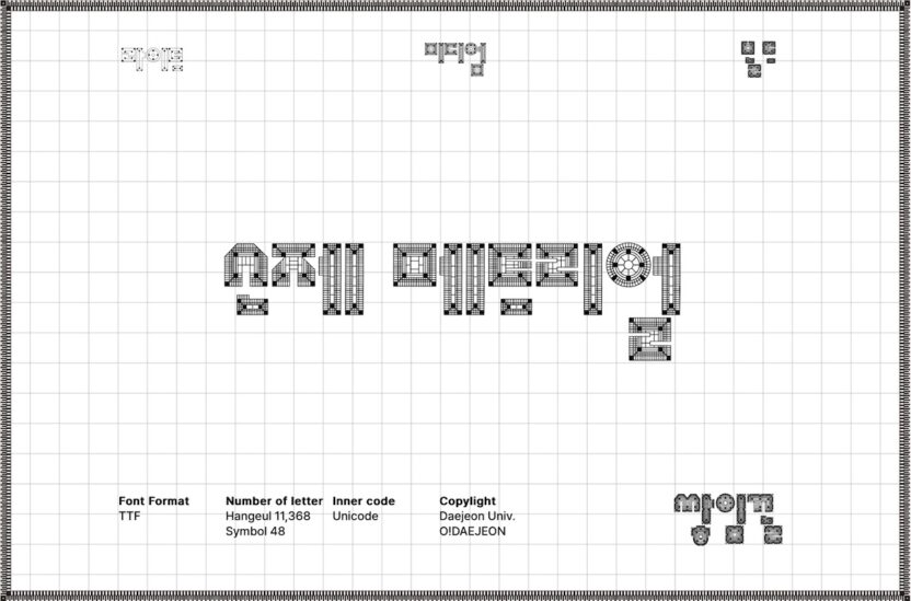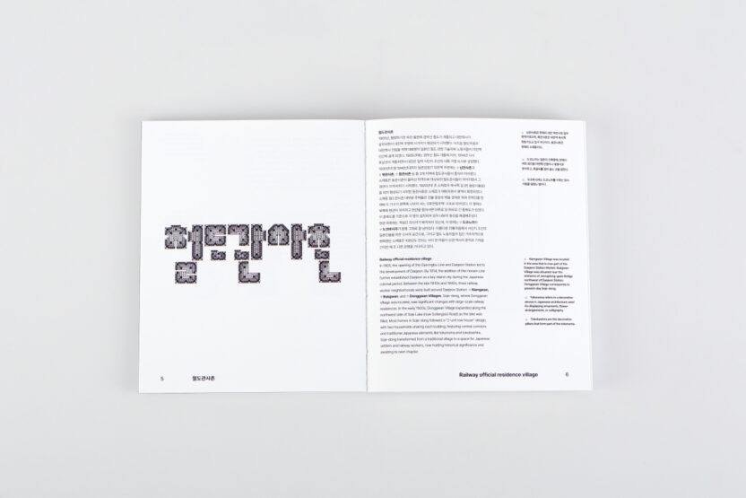 대전 동구 소제동 철도관사촌의 정체성과 역사적 가치를 시각적으로 표현하기 위해, “쌓음꼴”을 제작하였다. “쌓음꼴”은 라이트, 미디엄, 볼드 총 세 가지 크기로 구성되며. 단순히 글자의 크기나, 굵기가 달라지는 것이 아닌, 시간이 지남에 따라 철도관사촌이 증축되고 변화해 온 과정을 반영하여 제작되었다.