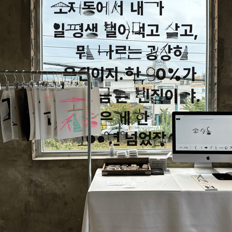 히라가나 연상법은 일본어 문자를 기억하기 쉽게 만드는 기법으로, 히라가나 글자와 연관된 이미지를 활용해 기억을 돕는다. 이 작품에서는 대전 동구 소제동의 사진과 주민 인터뷰에서 추출한 단어를 바탕으로 한글 레터링을 디자인하였으며 히라가나 연상법의 아이디어를 적용하여 일본어 문자와 소제동의 특성을 시각적으로 결합하였다. 이를 통해 소제동의 역사와 감정을 문자와 시각적 요소로 효과적으로 표현하고 있다.