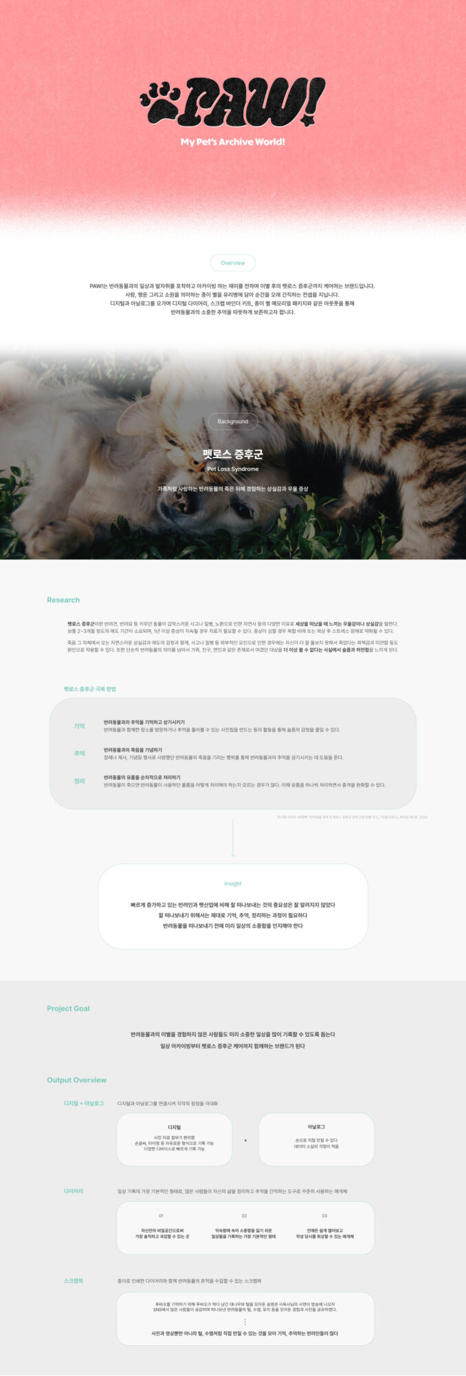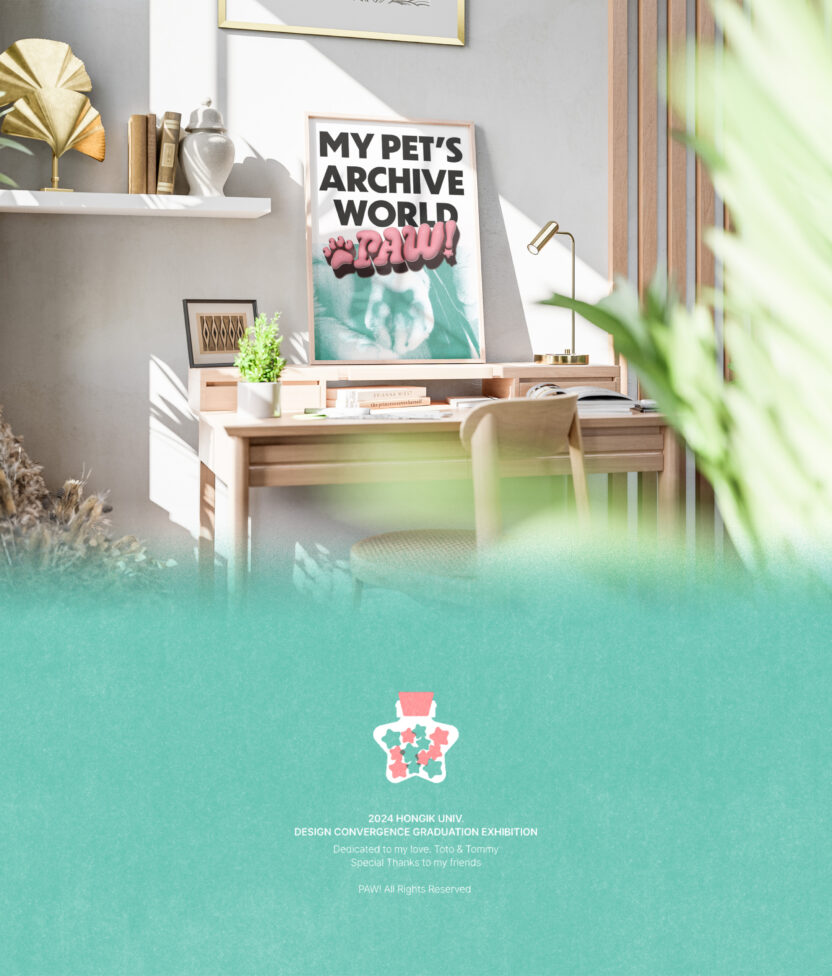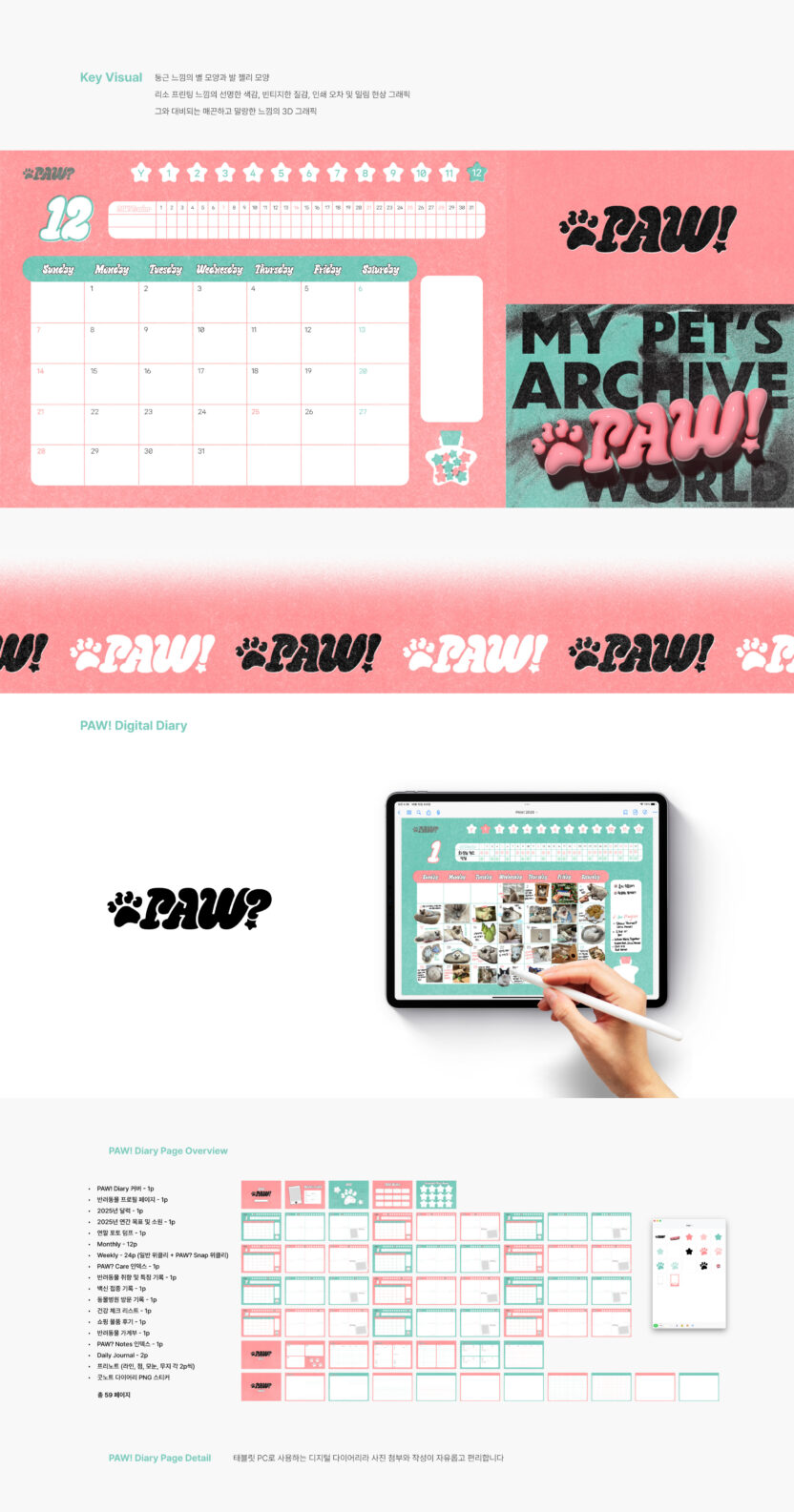 My Pet’s Archive World! PAW!는 반려동물과의 일상과 발자취를 포착하고 아카이빙 하는 재미를 전하며 이별 후의 펫로스 증후군까지 케어하는 브랜드입니다. 사랑, 행운 그리고 소원을 의미하는 종이 별을 유리병에 담아 순간을 오래 간직하는 컨셉을 지닙니다. 디지털과 아날로그를 오가며 디지털 다이어리, 스크랩 바인더, 종이 별 메모리얼 굿즈와 같은 아웃풋을 통해 반려동물과의 소중한 추억을 따뜻하게 보존하고자 합니다.
