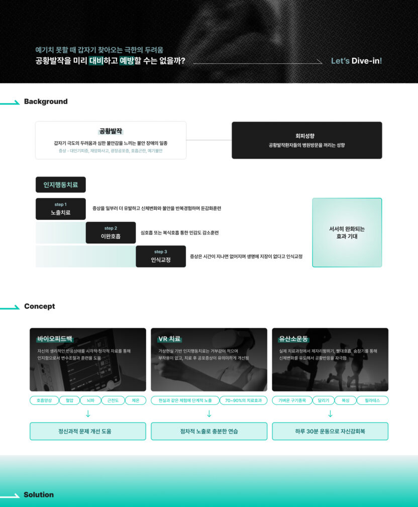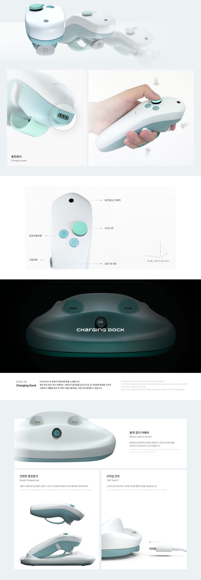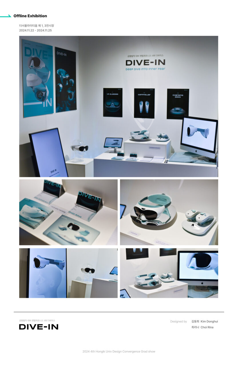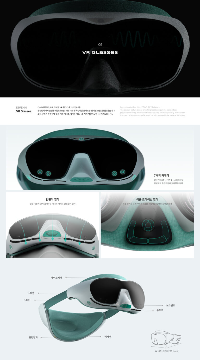 공황 발작 멘탈피트니스 기기 DIVE-IN은 공황 발작 시 느끼는 물에 잠기는 듯한 공포감에 직면하고 대비 훈련하여 극복할 수 있도록 도와주는 VR 디바이스입니다.
