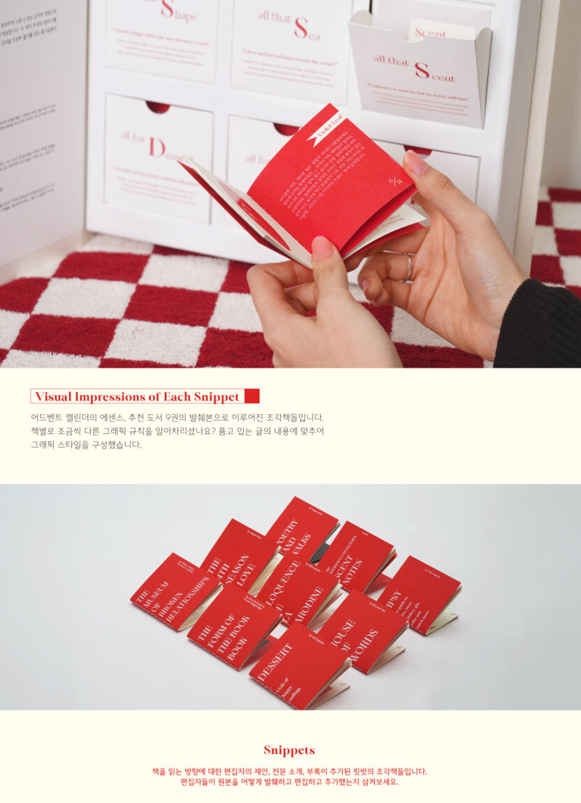 이 제품은 어드벤트 캘린더 형식으로 매일 한 편씩 조각책을 선물 받는 듯한 경험을 선사하며,
