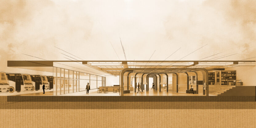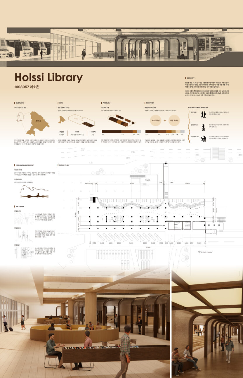 대한민국의 지방도시인 천안에 지역 사회의 지속 가능한 발전에 기여하는 도서관을 제작하고자 하였다. 천안 지역에 대한 리서치를 진행하고 이를 바탕으로 천안 시외 버스 터미널에 이동의 컨셉을 가진 여행 도서관을 제작하였다.