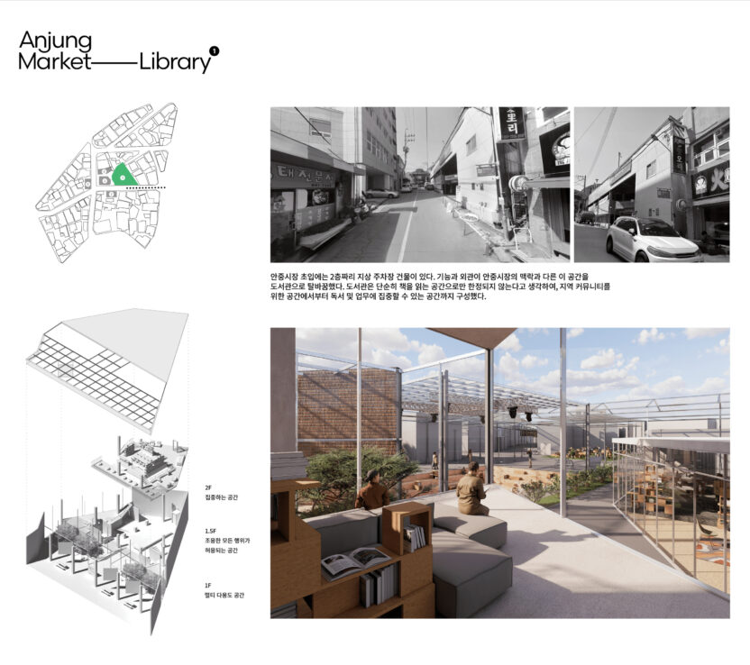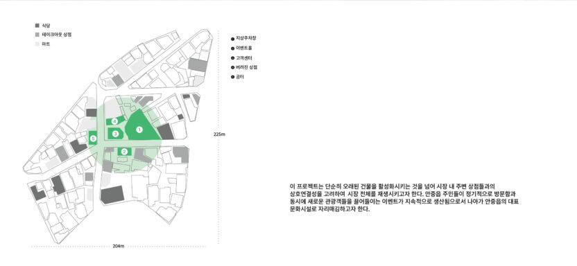 평택시 안중읍에 위치한 안중시장 내에 문화시설을 만드는 지역 활성화 프로젝트이다. 평택시의 서부에 문화시설이 매우 부족하다는 특성을 반영하여, 평택시의 특산물과 관련된 총체적인 경험을 제공하는 멀티 시장으로 재구성했다.