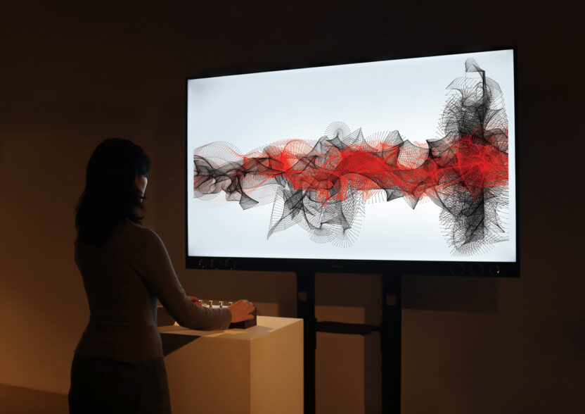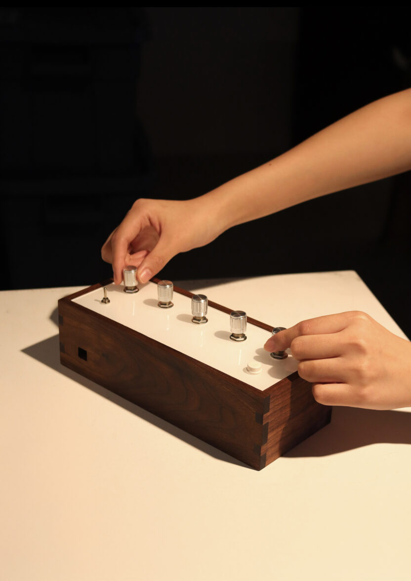 〈Memorycatcher〉는 기억을 시각화하는 도구이다. 기억의 복합성을 직접적으로 경험하고, 개인화된 그래픽으로 표현하도록 한다. 리셋 버튼으로 새로운 기억을 형성하고, 세이브 스위치로 기억을 저장할 수 있다. 하나의 기억은 나의 오감, 함께한 상대, 상황 등 다양한 요소들이 복잡하게 얽혀 만들어진다. 그렇게 만들어진 기억은 감정으로 남지만, 인간은 어째서 그 기억이 이러한 감정을 갖는지 명확히 인지하지 못한다. 이처럼 기억 형성 과정은 복잡하며, 불명확하다. 〈Memorycatcher〉는 5개의 노브를 통해 기억을 시각화한다. 각각의 노브가 그래픽에 어떤 영향을 미치는지는 알 수 없지만, 노브를 이리저리 돌리다보면 어느새 각자의 기억을 상징하는 그래픽이 완성된다. 관람자는 불명확한 과정을 통해 기억의 형태를 마주하게 된다.
