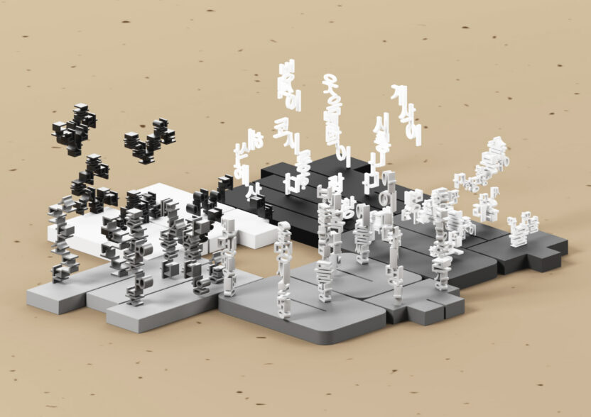 〈바람과 물살의 소리〉는 소멸위기 언어인 제주어를 3D 그래픽으로 표현한 작품이다. 유네스코 지정 소멸위기 언어인 제주어는, 역사적, 지리적 특성으로 인한 투박한 감정표현이 발달하였다. 슬픔, 기쁨, 놀라움, 분노, 사랑이라는 다섯 가지의 감정어로 분류하고, 특유의 시청각적 이미지를 3D 그래픽으로 표현하였다. VR, WEB 등 다매체를 통해 사용자가 쉽고 재미있게 제주어를 경험할 수 있도록 하였다. 행동이 눈에 보이는 것만 같은 제주어의 매력. 〈바람과 물살의 소리〉가 주는 흥미로운 경험을 통해, 제주어가 오래도록 기억될 수 있기를 기대한다.