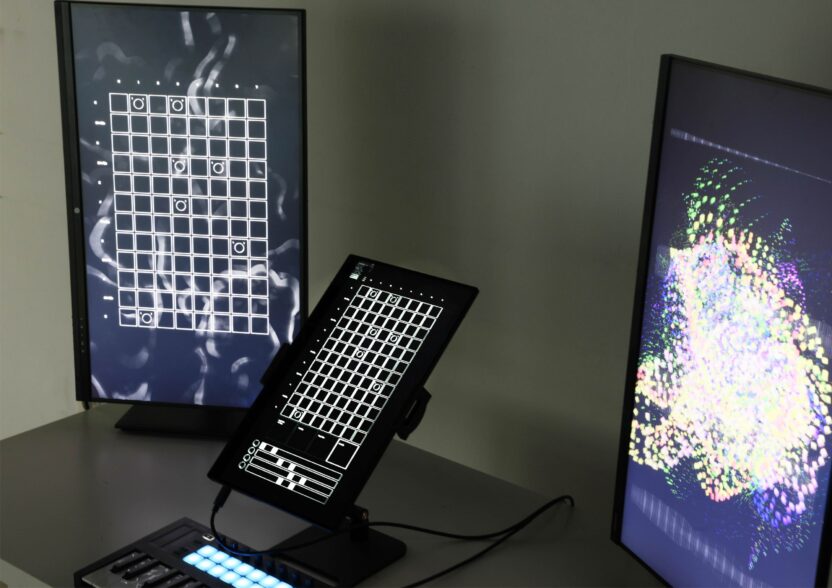 시간에 직관적으로 반응하는 사운드스케이프 및 그래픽 유저 인터페이스를 제작하였다. 본 작품은 크게 두 가지 부분으로 나뉜다.