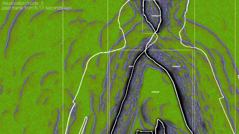 〈과거와의 조우〉는 작품 앞의 관객이 과거의 모습과 상호작용할 때, 그래픽과 오디오가 반응하는 미디어아트 프로젝트이다. 여러 소프트웨어 간의 통신을 활용해 멀티미디어적 접근을 최대한 고수하고자 했다. 관객은 작품 앞에서 움직이면서 본인의 1~10초 전의 모습과 상호작용한다. 시간과 비주얼은 컨트롤러로 제어할 수 있으며, 현재 모습과 과거 모습이 겹치는 정도에 따라 오디오가 반응한다.