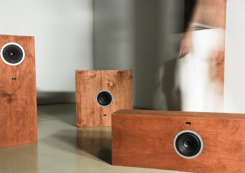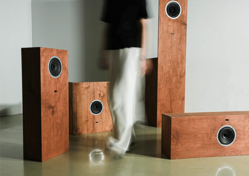〈Grove〉는 조화로운 소음을 창조하는 반응형 스피커 시스템이다. 네 개의 스피커로 구성되어 있으며, 각각 하늘, 물, 땅, 사람이라는 네 가지 테마의 앰비언스 음원을 재생한다. 스피커에 사용자의 움직임이 감지될 때마다 음원이 활성화된다. 처음에는 각각의 소리가 별개의 소음처럼 들리지만, 시간이 지나고 스피커 사이를 거닐수록 소리들이 자연스레 어우러지며 새로운 음향을 만들어낸다. 이 소리는 작은 움직임에도 민감하게 반응하며 끊임없이 변화한다. 소음은 재생되고, 쌓였다가, 다시 사라지며, 점차 깊고 풍부한 선율로 변모해 마치 숲 속을 거니는 듯한 느낌을 준다. 이는 단순한 소리의 경험을 넘어, 움직임과 소리의 상호작용을 통해 사용자가 직접 참여하는 예술적 경험을 선사한다.