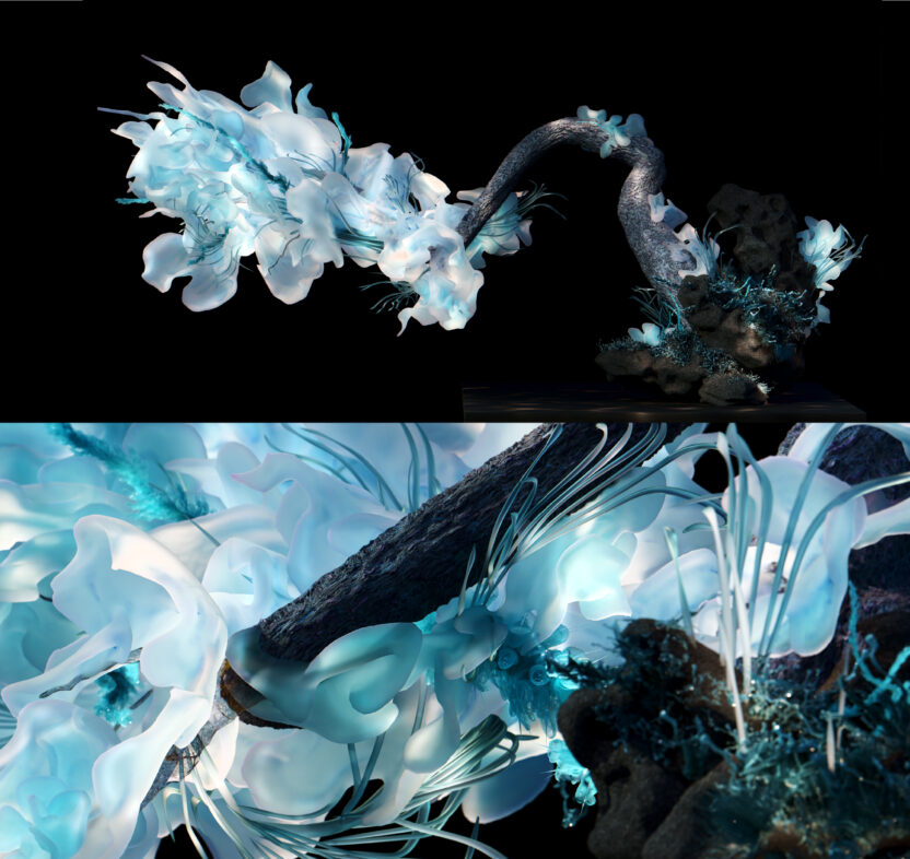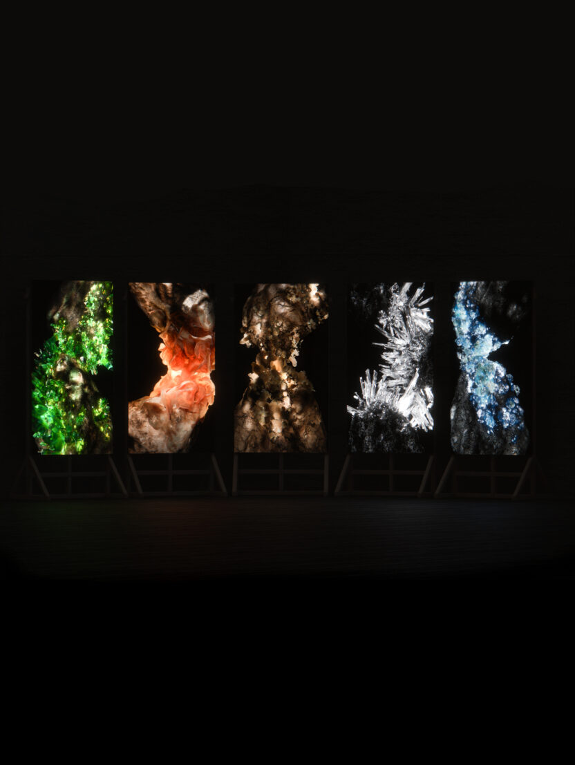 〈元行의 결정〉은 木, 火, 土, 金, 水 오행의 다섯 가지 요소가 서로 영향을 주고받으며 변화하는 원리를 지구의 암석이 형성되고 변형되는 과정에 빗대어 시각화하였다. 역동적인 입자의 흐름, 결정화하며 자라나는 광물들, 암석의 변성 과정, 물질과 화학적 형태의 변형 등을 통하여 오행의 상생과 상극의 원리를 시각적으로 구현하였다.