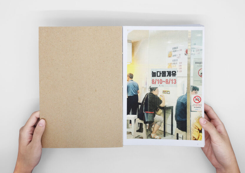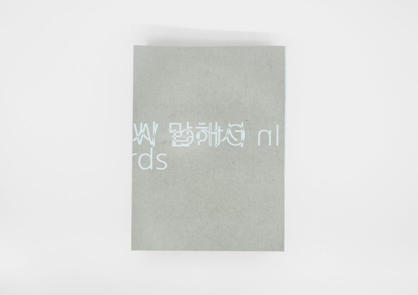 〈In Other Words · 다시 말해서〉는 일상에서 채집한 한국어를 ‘말 맛나게’ 번역하려는 시도와 그 결과를 담은 책이다. 이 책은 한국어와 영어를 오가며 언어와 이미지가 서로 다른 맥락과 배경을 경유할 때 발생하는 변화를 탐구한 결과물이기도 하다. 번역 과정에서 쉽게 유실될 수 있는 한국적인 맥락을 사진을 통해 보존하는 동시에, 디자인을 ‘언어의 생명력을 다루는 일’로 수렴하여 원본(한국어)과 번역본(영어) 간의 격차를 줄이고자 한다. 책은 하나의 시그니처 안에 단 하나의 번역 작업을 포함하는 구조를 가지고 있다. 원본이 우측에, 번역본이 좌측에 배치되며, 그 사이에는 이미지로 수식된 ‘번역 과정’이 삽입되어 서로 유기적으로 연결된다. 덧표지는 번역에 대한 상세한 해제를 제공하여 독자가 ‘말맛’을 펼쳐 음미할 수 있는 장치를 마련한다.